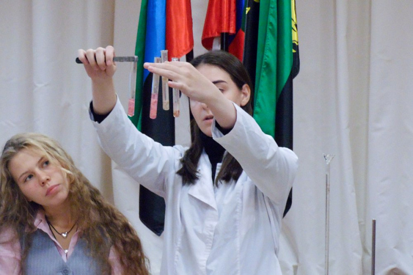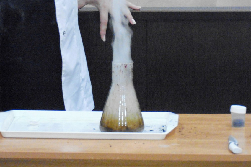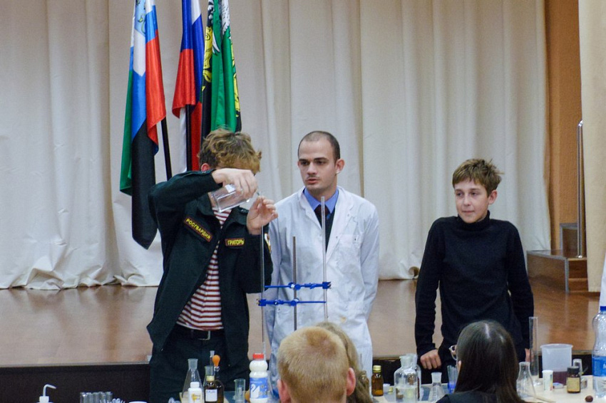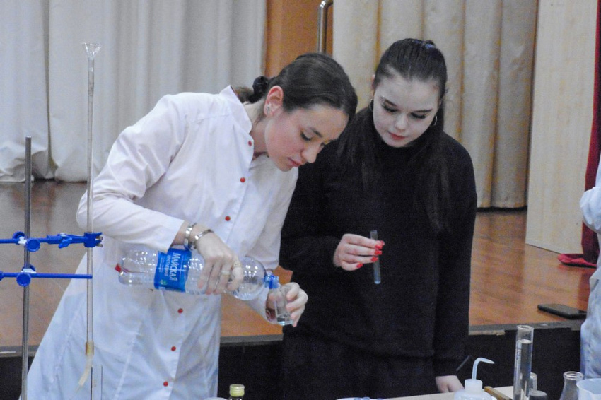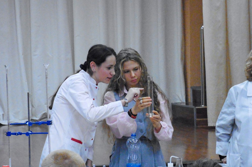 Преподаватели и студенты рассказали о значимости химии в разных областях нашей жизни и провели интересные эксперименты: определили показатели воды, исследовали молоко, фрукты и колбасные изделия. Школьники с удовольствием приняли участие в активностях и заинтересовались интересной наукой.