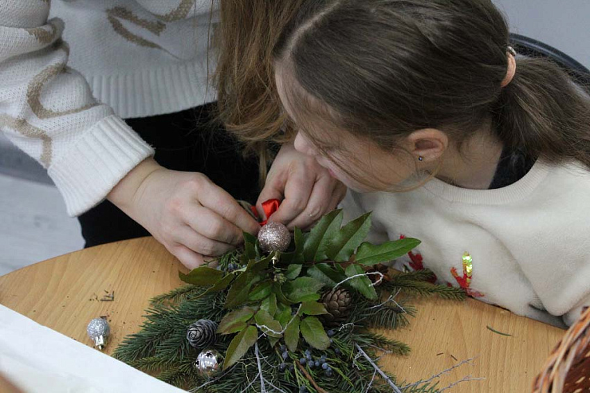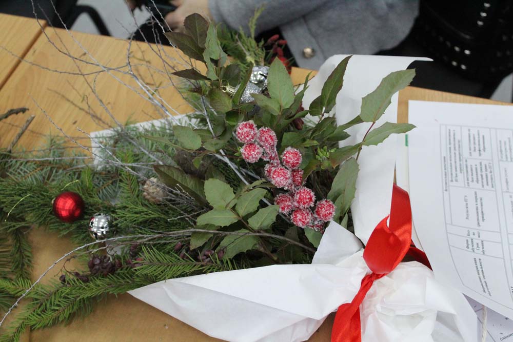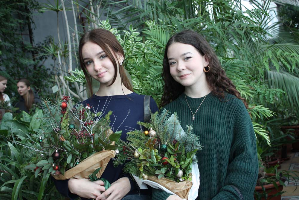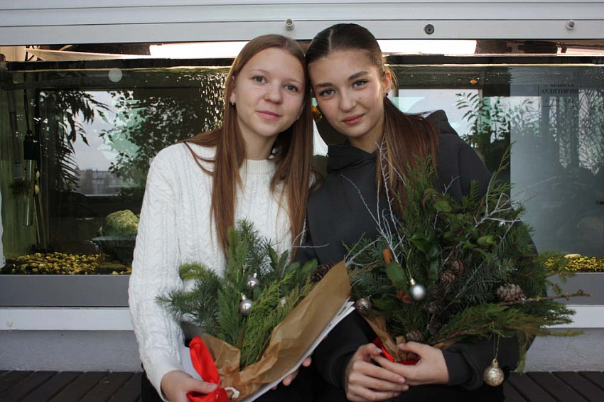 Гостей встречали ароматы хвойных растений – елей, пихт, можжевельников, красота плодов и листьев лиственных растений – магонии падуболистной, барбариса обыкновенного. Будущие ландшафтные архитекторы Евгения Клыкова, Кристина Дронова, Валерия Шконда, провели мастер-класс по созданию новогодней композиции, главными компонентами которых стали сосновые шишки, ёлочные украшения и, конечно, вдохновение. Как признавались гости, тёплая, почти тропическая атмосфера, улыбки и совместное творчество стали атрибутами мероприятия.
