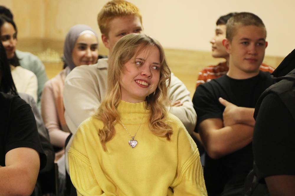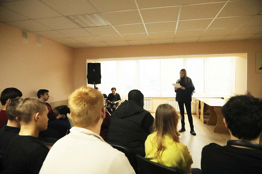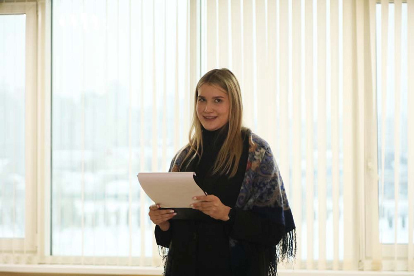 Ведущей праздничного вечера стала председатель студсовета Центра гражданско-патриотического воспитания обучающихся Елизавета Рыбочкина.