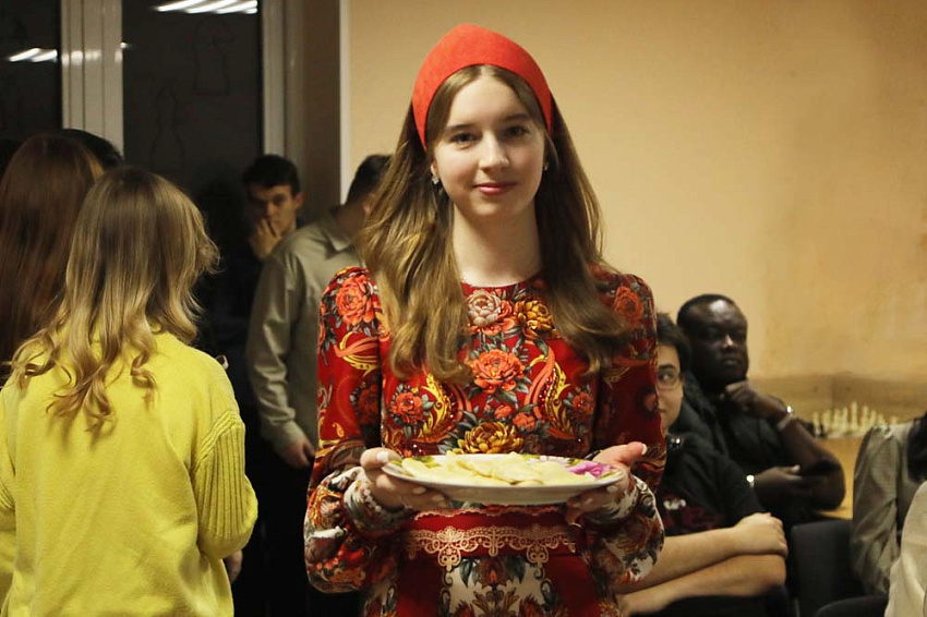 Представители «Союза студентов» и студенческого совета общежития №4 подготовили для иностранных обучающихся из Туркменистана, Сирии, Египта и других стран Африки культурно-гастрономическое мероприятие, знакомящее с историей возникновения праздника, его обычаями и традициями, а также провели мастер-класс по лепке вареников с сюрпризами.