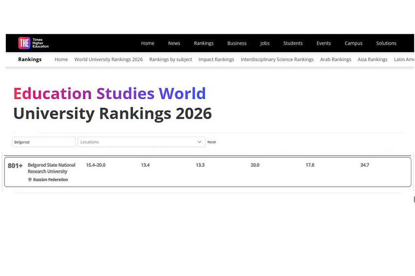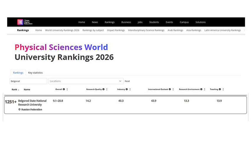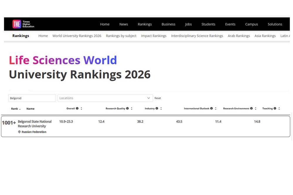 Международное агентство Times Higher Education опубликовало 11 предметных рейтингов, в пяти из которых представлен Белгородский государственный национальный исследовательский университет. Как прокомментировала специалист отдела мониторинга и аналитики реализации программ развития НИУ «БелГУ» Олеся Серкина, наш университет присутствует в предметных рейтингах Times Higher Education с 2019 года: сначала по двум предметам – Физические и Инженерные науки, с 2024 года – по четырём: к первым двум добавились Медицинские и Педагогические науки, а с 2026-го – по пяти предметам, в т.ч. по Наукам о жизни.