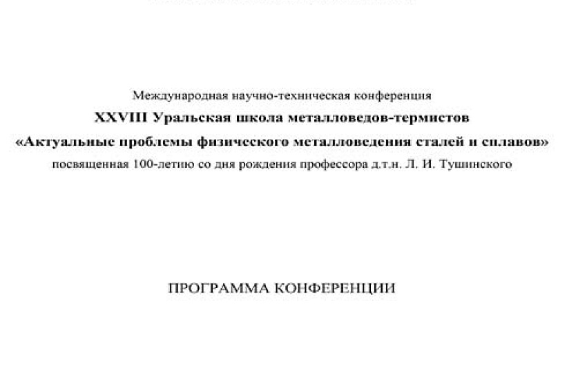 Международная конференция Уральской школы металловедов-термистов «Актуальные проблемы физического металловедения сталей и сплавов» состоялась в городе Бердске Новосибирской области. XXVIII конференция была посвящена 100-летию со дня рождения заслуженного деятеля науки, доктора технических наук, профессора Леонида Иннокентьевича Тушинского, основателя школы материаловедения НЭТИ.