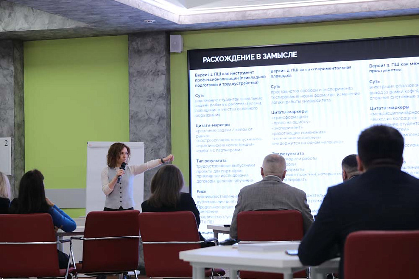 В первый день участникам сессии предстояло найти расхождения с замыслом проекта и определиться с выбором универсальной ключевой модели профессиональной школы, которая бы максимально соответствовала стратегическим целям развития университета.