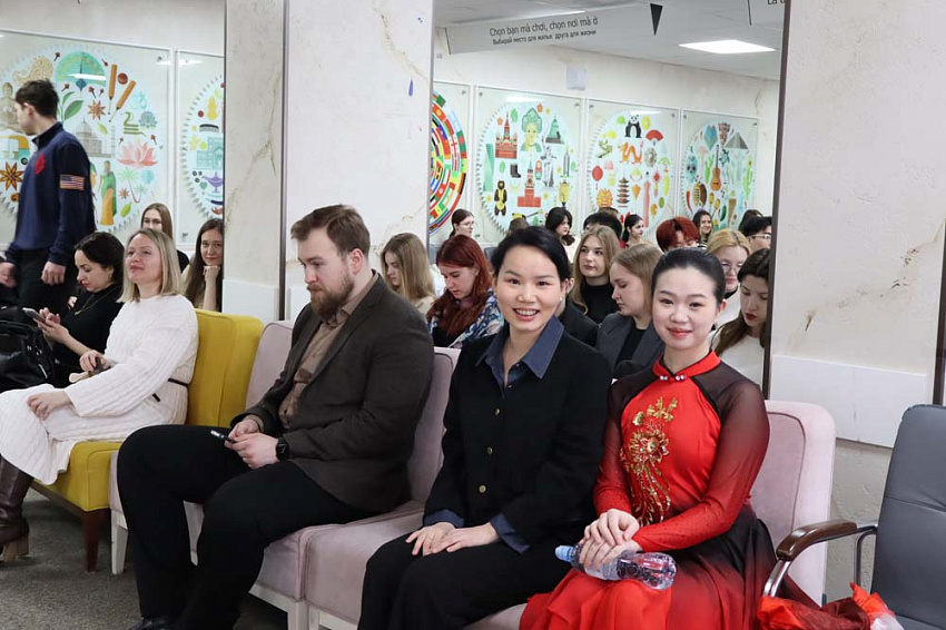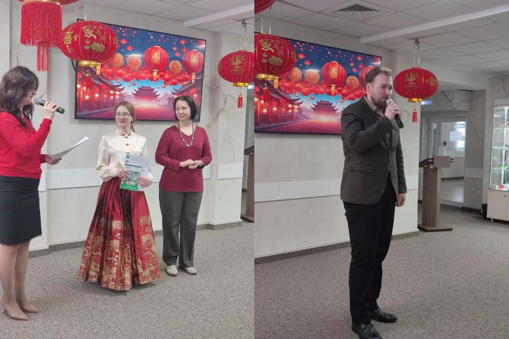 Торжество началось с приветственных слов почётных гостей: директора международного информационного центра Ольги Лютовой и победителя всероссийского конкурса «Учитель года 2025», ассистента кафедры второго иностранного языка Дмитрия Баланчукова. Гостей и участников они поздравили с наступившем китайским Новым годом, подчеркнув важность подобных мероприятий для укрепления связей между Россией и Китаем.