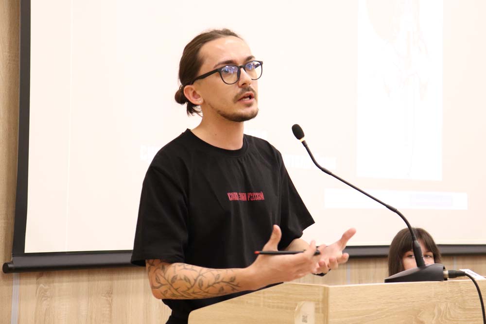 Мероприятие открыл ассистент кафедры русского языка, профессионально-речевой и межкультурной коммуникации НИУ «БелГУ» Кирилл Травкин. Он рассказал о многообразии и значении орнаментов на одежде и предметах быта, подчеркнув их роль как носителей культурного кода.
