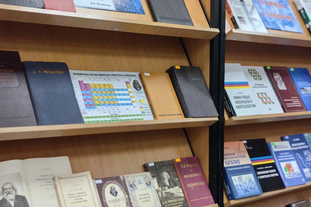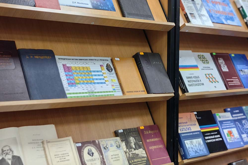 Слушателей также познакомили с печатными научными, научно-популярными и учебными изданиями по химии, в том числе редкими, из фонда университетской библиотеки. На книжной выставке и в обзоре-презентации «Химическая наука – хроника научного поиска» студенты смогли увидеть редкие издания из фонда университетской библиотеки и проследить историю развития химической мысли.