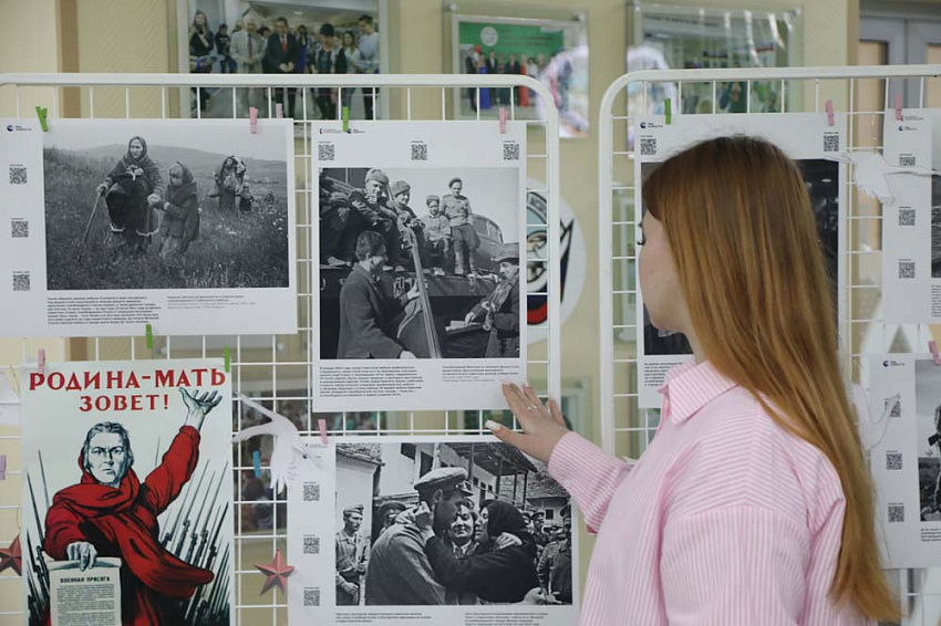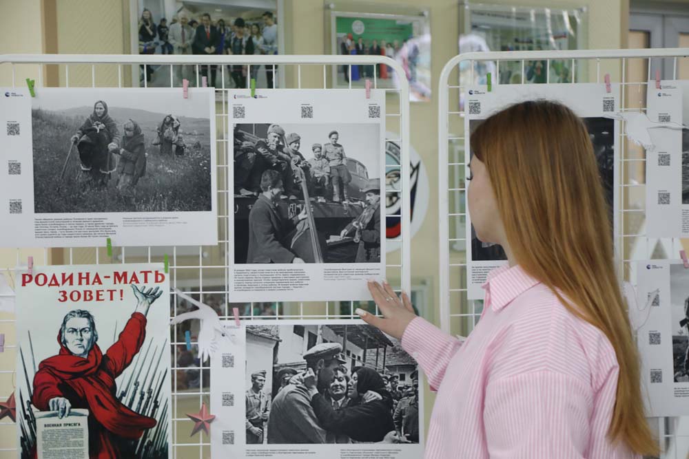Одной из значимых частей программы стала выставка, подготовленная студентами историко-филологического факультета. Экспозиция была представлена на основе четырёх модулей комплексной мобильной выставки проекта «Освобождение. Мир народам», реализуемого Международной медиагруппой «Россия сегодня» при поддержке Президентского фонда культурных инициатив. В неё вошли материалы, посвящённые освобождению советских территорий и стран Европы в 1943–1945 годах, включая Крым и Беларусь. Основу выставки составили уникальные материалы фотоархива Совинформбюро, факсимиле фронтовых сводок и документальные снимки военных корреспондентов.