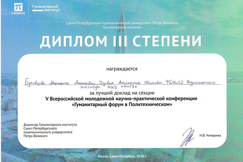 Представители НИУ «БелГУ» стали участниками Всероссийской молодёжной научно-практической конференции